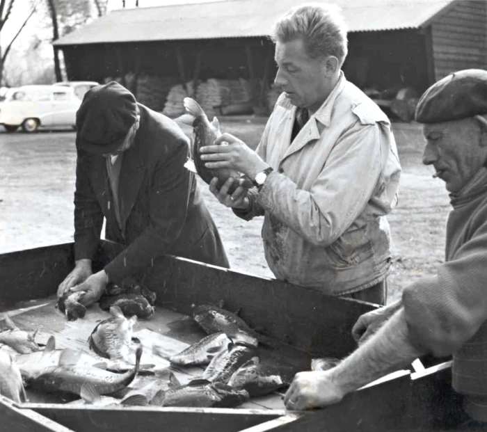 Carp breeding in Valkenswaard has a long history that begins around the turn of the 20th century, when entrepreneurs first started farming carp commercially in the area. In the 1950s, the property with the fishponds was acquired by the Dutch government and eventually became part of the Organisation for the Improvement of Inland Fisheries (OVB), which produced carp and other species to support inland fisheries and, for sport angling through restocking projects. The government considered this an important initiative, as lakes and canals across the Netherlands were rather poorly stocked with fish and required supplemental restocking.