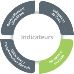 Nous avons mis en évidence 4 des 18 indicateurs intermédiaires (midpoint) utilisés dans la méthodologie ReCiPe 2016. Bien que ReCiPe 2016 soit assez complet en termes d'indicateurs intermédiaires, l'utilisation de farine et d'huile de poisson d'origine marine ne figure dans aucun indicateur intermédiaire ou final. Afin de tenir compte des effets directs, il a été décidé d'ajouter un indicateur final supplémentaire qui est également normalisé et pondéré dans le score de durabilité d'Alltech Coppens. Cet indicateur final est appelé « Ressources marines ».